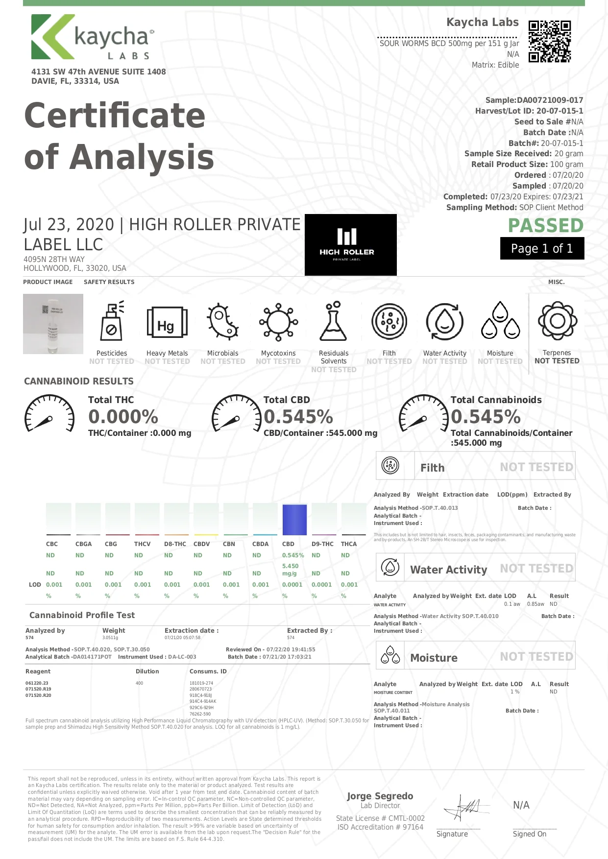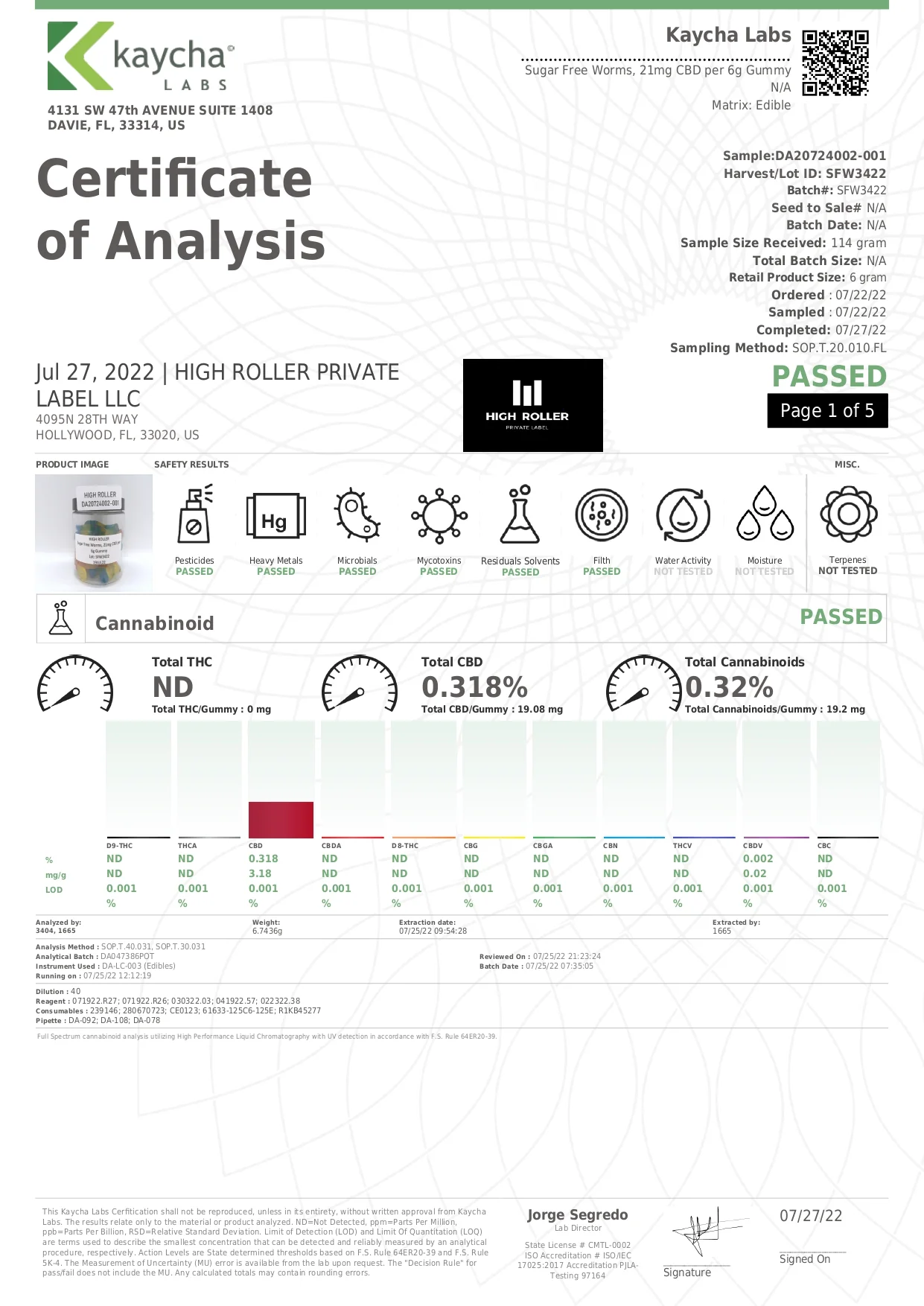 CORN SYRUP (FROM CORN), SUGAR (FROM BEETS), WATER, GELATIN, LACTIC ACID, CITRIC ACID, NATURAL AND ARTIFICIAL FLAVORS, PECTIN (DERIVED FROM FRUIT), FD&C YELLOW #5, FD&C RED #40, FD&C YELLOW #6, FD&C BLUE #1, HEMP EXTRACT CANNABIDIOL (CBD), Coconut oil.