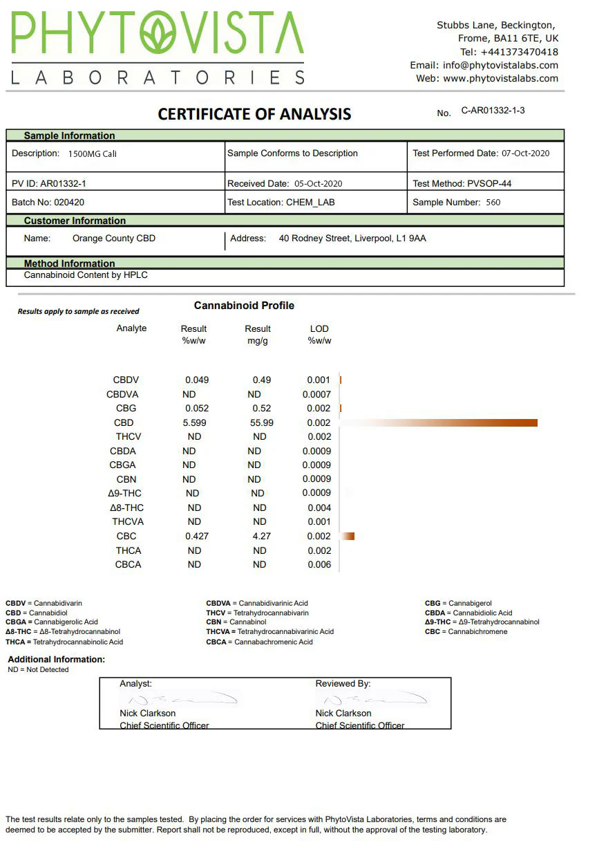 Orange County CBD terpene infused Cali E-Liquid range is packed with award-winning Broad Spectrum CBD Extract. The CBD in these flavoured liquids is formulated using a specialist CO2 process that has been developed to isolate and remove any unwanted compounds while creating the maximum potency level of phytocannabinoids. Cutting edge technology is employed to ensure you get a product that includes the highest levels of CBD. Orange County CBD hemp-based phytocannabinoids offer an organic, non-GMO formulation with no chemical solvents.